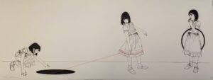 Los sugestivos entornos que crea están habitados por misteriosas figuras femeninas, atrapadas en la quietud, y sus cuerpos parecen estar esperando algo que está por suceder.