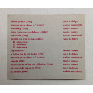 Contexto: Tarjeta-invitación al evento. En el concierto se interpretaron piezas de Juan Hidalgo, Walter Marchetti, Tomás Marco y Ramiro Cortés.